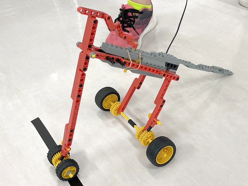 最後に、テキスト巻末(かんまつ)の付録(ふろく)にあるように、タイヤとラチェット(*4)を使ってローラースケーターに改造してみましょう。