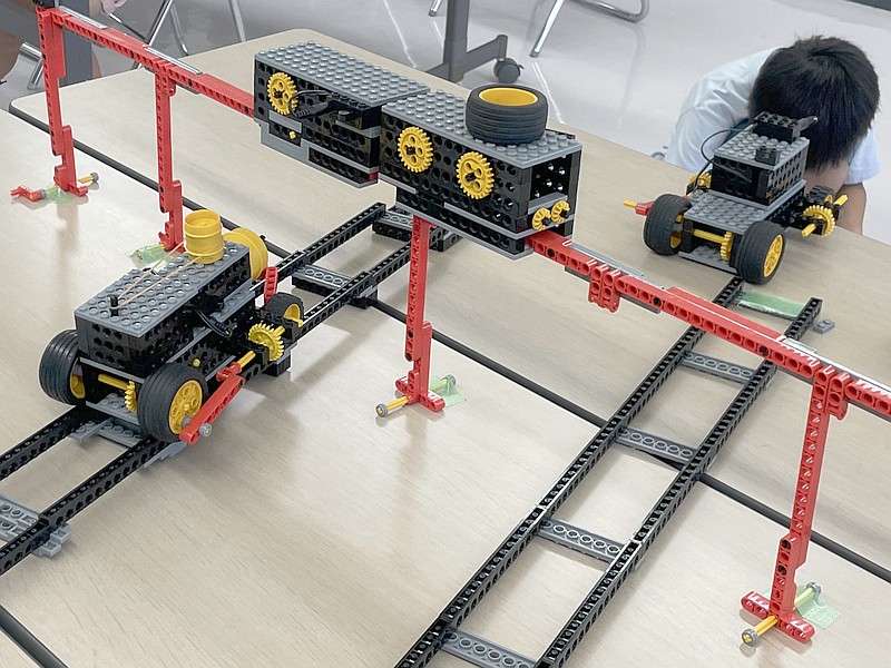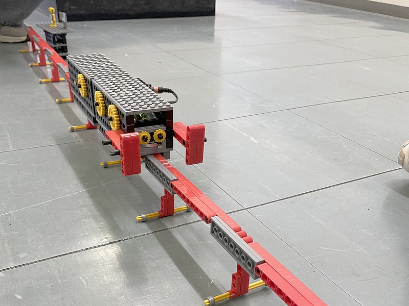 すると、ロッドの往復に合わせて、前輪と後輪が交互に前へ転がることを繰り返し、本体が前進するようになりました。